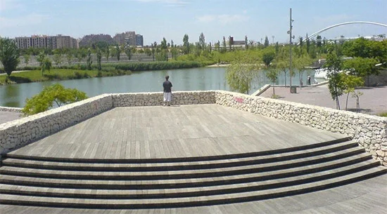 No sé si han estado en el Parque de Cabecera, en Valencia. Lo que les muestro debajo es un pequeño escenario de madera que hay en dicho parque, pensado —imagino— para obras teatrales, conciertos, etc. Al tipo de la foto no lo conozco, por cierto.