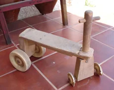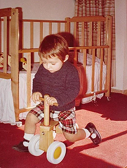 También tenía la extraña manía de entrar en el coche por la ventanilla, pero a lo bestia, con carrerilla. Hasta que, claro, un día topé de manera imagino que bastante dolorosa con el freno de mano, o él topó conmigo, lo que me dejó una bonita marca entre la nariz y el labio superior e hizo que a partir de entonces, utilizar las puertas me pareciese mejor idea. Y de los coches a la velocidad. Tirarse montado, con aproximadamente un año y medio de edad, en una especie de bicicleta de madera (si, esa, que tiene más de 25 años de antigüedad), sin frenos y de estabilidad más que discutible, por una pendiente de treinta metros con un ocho o nueve por ciento de desnivel, no es sensato. Porque los pies a veces frenan... y a veces no. Sin comentarios. La ostia también debió ser antológica. Y en plural.