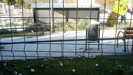 Por supuesto, al encontrarse vallado, el parque no tiene mantenimiento, ni jardinería, ni limpieza, ni nada, incluyendo gente que utilice los bancos y niños que hagan uso del tobogán, por supuesto completamente pintarrajeado por los típicos descerebrados hormonados. Así que en definitiva, con la inestimable ayuda de los adolescentes del instituto que hay a cincuenta metros y la incompetencia de los responsables de urbanismo, vamos camino de sustituir el anterior descampado por algo no mucho mejor, o al menos, muy lejos de lo que era en un principio. En cualquier caso, ya conocen como funciona la administración pública en este santo país; nada nuevo bajo el sol.